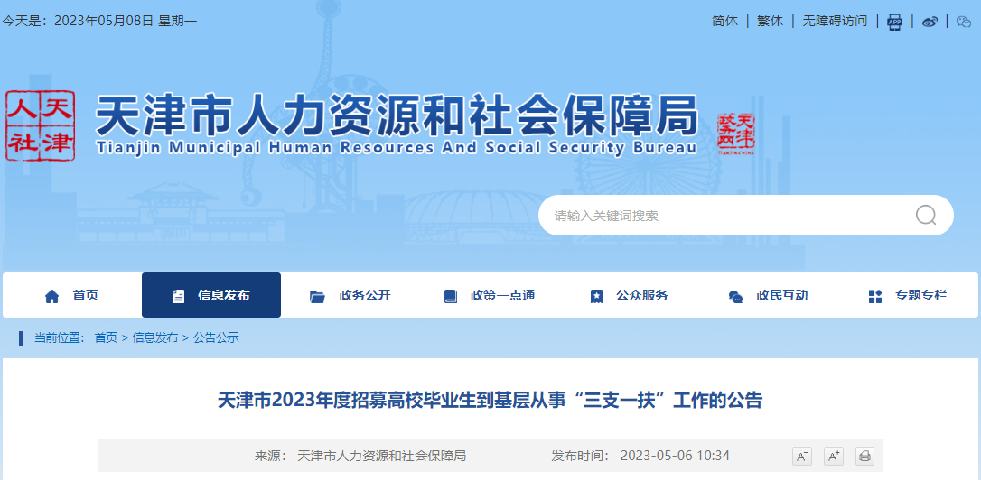 原文標(biāo)題:天津市2023年度招募高校畢業(yè)生到基層從事“三支一扶”工作的公告