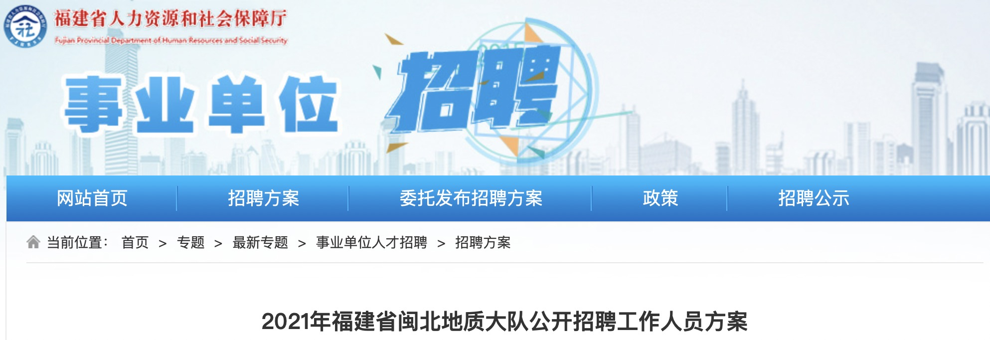 招聘信息在福建省人力資源和社會保障廳網(wǎng)站、福建省地質(zhì)礦產(chǎn)勘查開發(fā)局門戶網(wǎng)站、福建省閩北地質(zhì)大隊門戶網(wǎng)站公開發(fā)布。