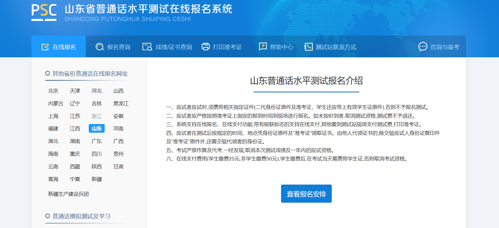 普通話測(cè)試實(shí)行網(wǎng)上報(bào)名,報(bào)名時(shí)間:3月7日10:00至13日24:00,逾期系統(tǒng)將自動(dòng)關(guān)閉。報(bào)名登陸“山東省普通話水平測(cè)試在線報(bào)名系統(tǒng)(http://sdbm.cltt.org/pscweb/index.html)”,操作步驟:點(diǎn)擊查看報(bào)名安排→選擇考點(diǎn)“濱州市”→報(bào)名→填寫考生報(bào)名信息→注意選擇各縣市區(qū)測(cè)試站點(diǎn)。首次報(bào)考的人員需先注冊(cè),再填報(bào)名信息、添加照片。