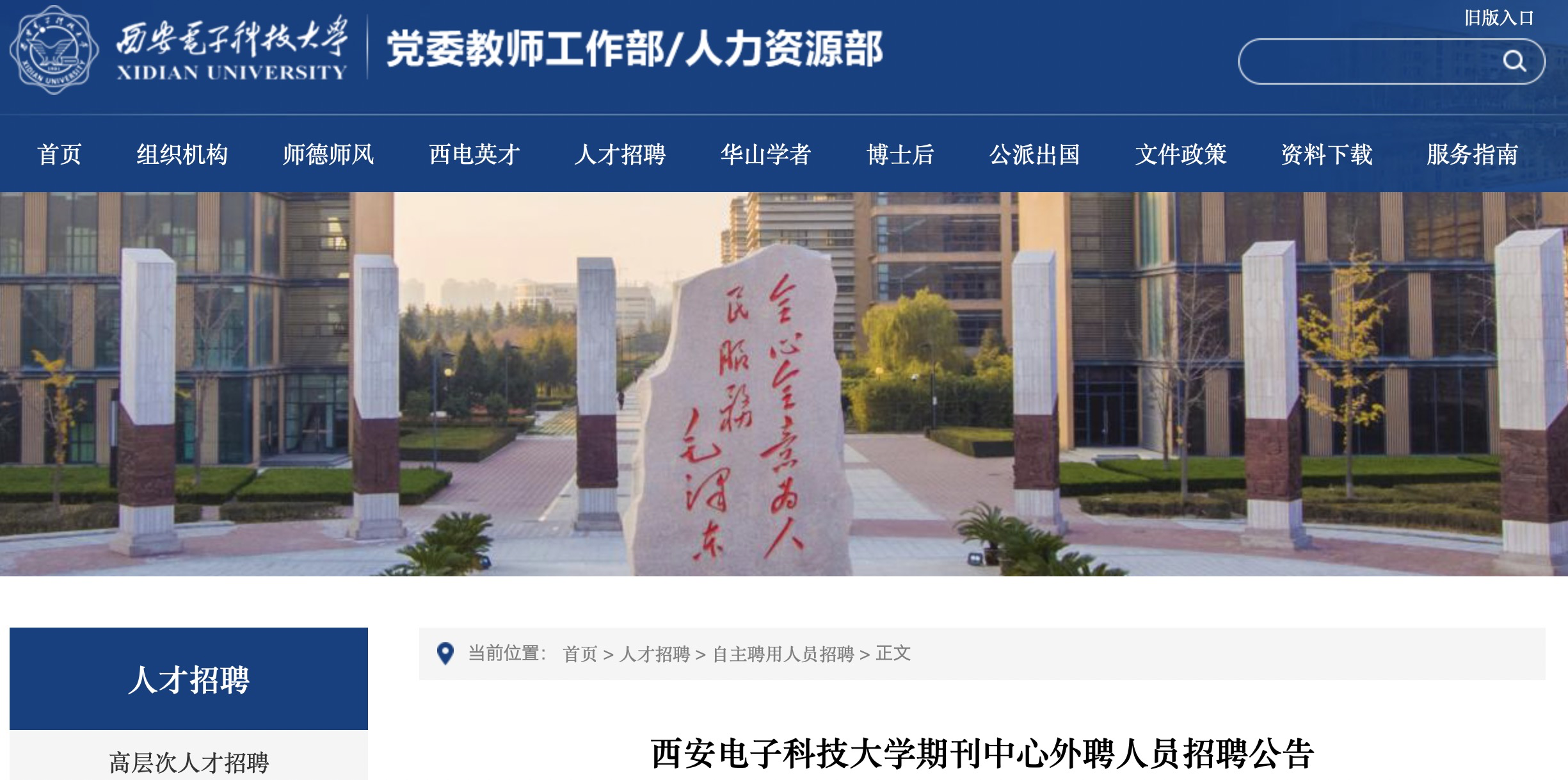2022年陜西西安電子科技大學(xué)期刊中心外聘人員招聘公告已發(fā)布,郵箱報名截止時間為:2022年3月10日,現(xiàn)將招聘公告原文發(fā)布如下: