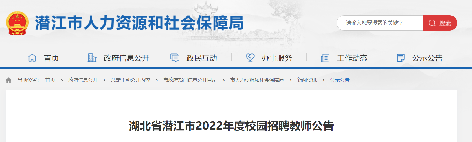 為促進(jìn)潛江市教育事業(yè)發(fā)展,根據(jù)潛江市公辦教師配置實(shí)際情況,潛江市開(kāi)展2022年度校園招聘教師工作,現(xiàn)將有關(guān)事項(xiàng)公告如下: