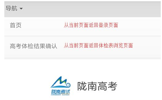 第二步:進(jìn)入“隴南考試”微信公眾號主界面,按下圖步驟操作,打開【隴南市高考體檢結(jié)果確認(rèn)系統(tǒng)】登錄頁面。