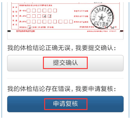 ☛考生對復(fù)檢結(jié)果進(jìn)行確認(rèn)(復(fù)檢后仍有疑義的,可向市體檢工作領(lǐng)導(dǎo)小組申請并報省教育考試院批準(zhǔn)同意后,由蘭州大學(xué)第一醫(yī)院進(jìn)行終檢,并作出最終裁定)。