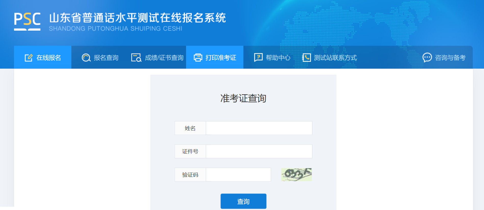 6月13日至考試前,完成網(wǎng)上繳費的考生,可登錄“山東省普通話水平測試在線報名系統(tǒng)”進入后在頁面上方點擊“打印準考證”,完成打印。
