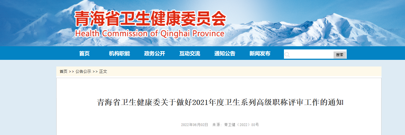 根據(jù)《青海省人力資源和社會保障廳關(guān)于做好2021年度職稱評審工作的通知》(青人社廳發(fā)〔2021〕99號)精神,現(xiàn)就2021年度全省衛(wèi)生系列高級職稱評審工作有關(guān)事項(xiàng)通知如下: