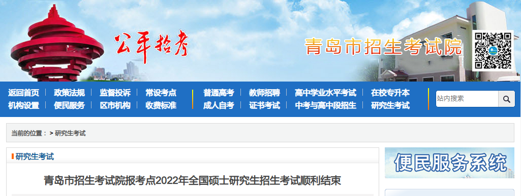 青島市招考院報(bào)考點(diǎn)2022年全國碩士研究生招生考試于2021年12月25日-27日順利舉行。