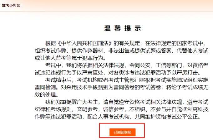 第三步:閱讀溫馨提示,點擊“已閱讀繼續(xù)”。