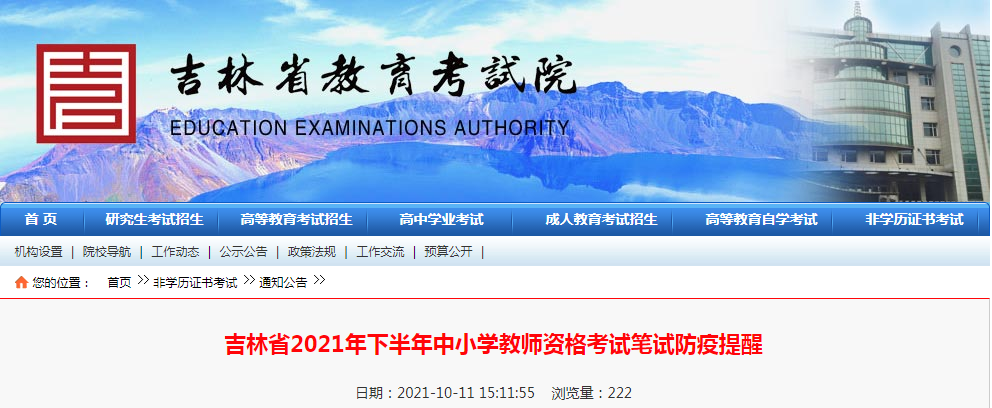 從吉林省教育考試院獲悉,2021下半年吉林中小學(xué)教師資格考試筆試防疫提醒已公布,請(qǐng)相關(guān)人員仔細(xì)閱讀,具體詳情如下: