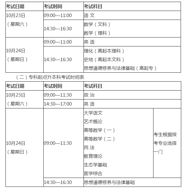 (一)高中起點(diǎn)升本、??瓶荚嚂r(shí)間表
