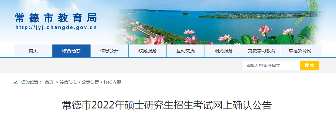 從常德市教育考試院了解到,湖南常德市2022年碩士研究生招生考試網(wǎng)上確認(rèn)公告,現(xiàn)將有關(guān)事宜通知如下: