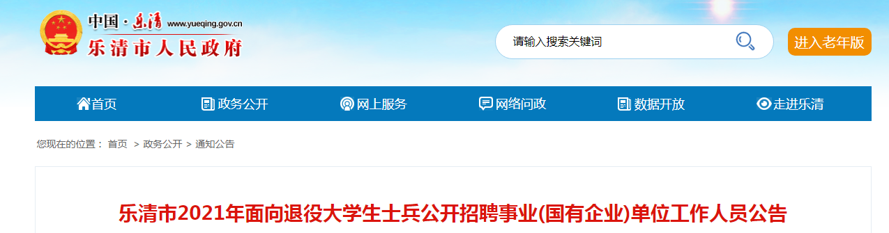 2021浙江省溫州市樂(lè)清市面向退役大學(xué)生士兵招聘事業(yè)單位人員公告已發(fā)布。報(bào)名時(shí)間:2021年10月18日9時(shí)—10月21日17時(shí)。為您整理了招聘條件和報(bào)名流程,供您參考。