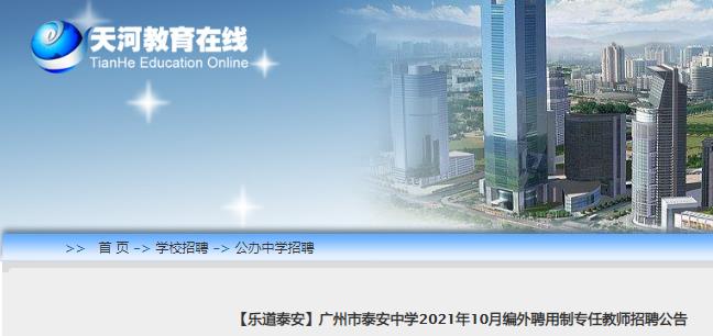 2021年10月廣東廣州泰安中學編外聘用制專任教師招聘1人,報名時間:2021年10月12日(星期二)至2021年10月19日(星期二)中午12:00?,F(xiàn)將招聘公告原文發(fā)布如下: