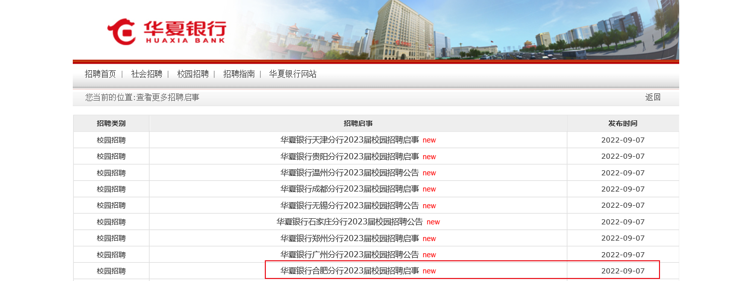 2023屆華夏銀行安徽合肥分行校園招聘若干人,報名時間:2022年9月30日截止,現(xiàn)將招聘公告發(fā)布如下: