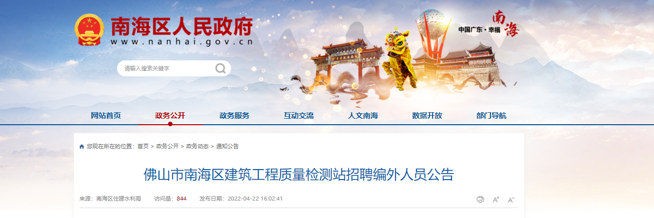 2022廣東省佛山市南海區(qū)建筑工程質(zhì)量檢測(cè)站招聘編外人員公告已發(fā)布。根據(jù)工作需要,佛山市南海區(qū)建筑工程質(zhì)量檢測(cè)站公開招聘編外人員,為您整理了招聘條件和報(bào)名流程,供您參考。