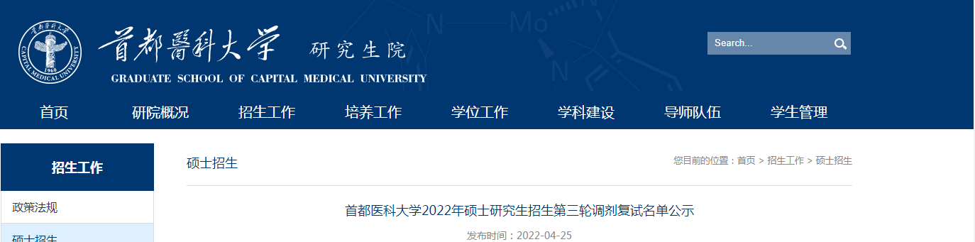 考研頻道從首都醫(yī)科大學(xué)研究生院了解到,首都醫(yī)科大學(xué)2022年碩士研究生招生第三輪調(diào)劑復(fù)試名單公示已公布,詳情如下: