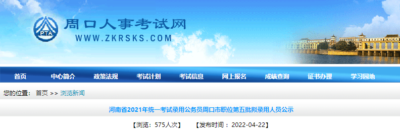 河南省2021年統(tǒng)一考試錄用公務(wù)員周口市職位第五批擬錄用人員公示