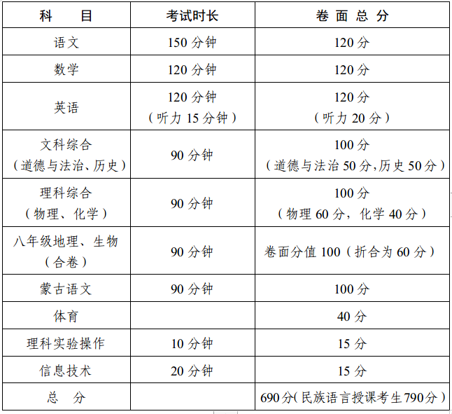 從烏海市教育局發(fā)布的“關(guān)于印發(fā)內(nèi)蒙古烏海市2022年初中升高中招生工作方案的通知”了解到,2022年內(nèi)蒙古烏海中考科目及各科分值已公布,詳細(xì)內(nèi)容如下: