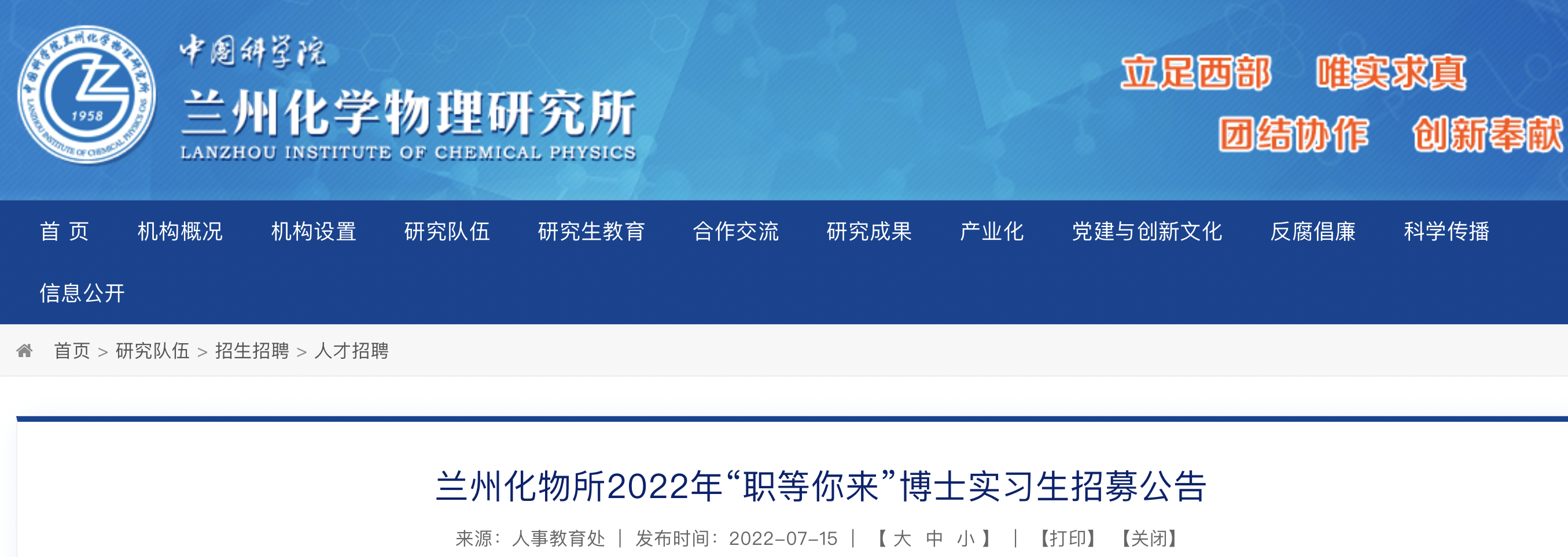 中科院蘭州化物所2022年人才需求計(jì)劃