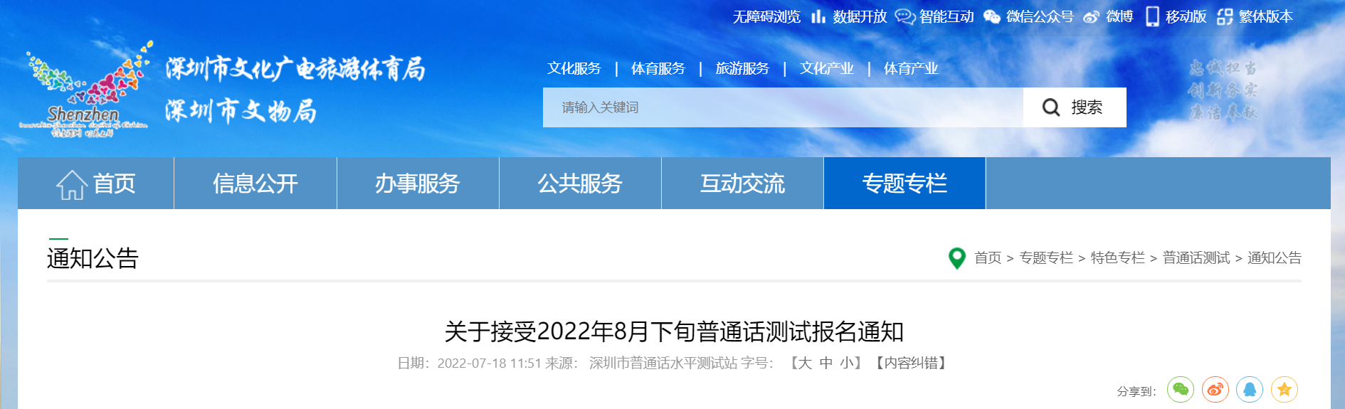 從深圳市文化廣電旅游體育局獲悉,2022年8月下旬廣東深圳普通話測(cè)試報(bào)名通知已公布,報(bào)名時(shí)間為7月26日起,具體詳情如下: