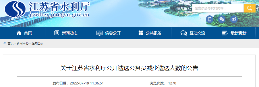 關(guān)于江蘇省水利廳公開遴選公務(wù)員減少遴選人數(shù)的公告