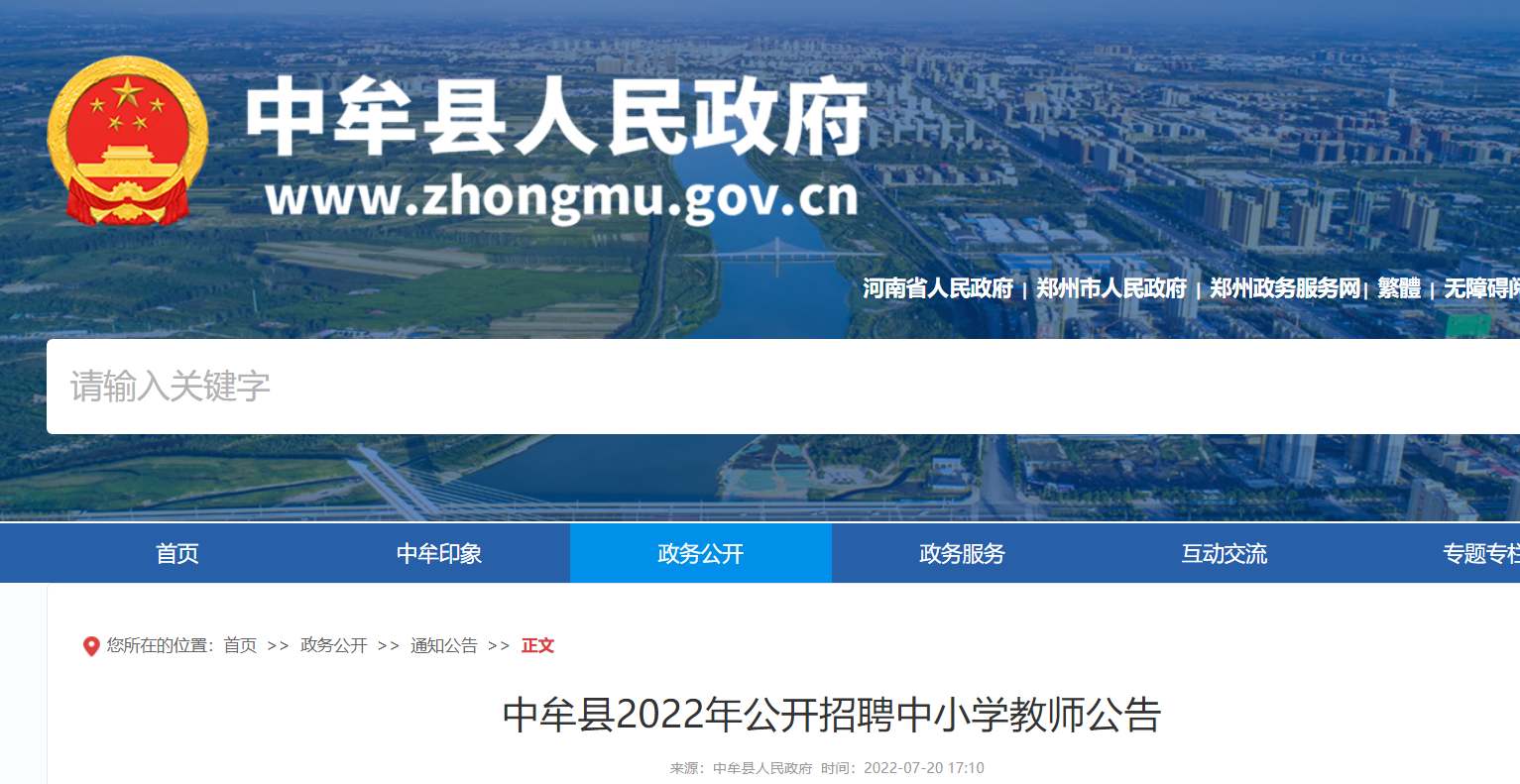 招聘公告和招聘過(guò)程中的相關(guān)信息均在中牟縣人民政府網(wǎng)站上發(fā)布,請(qǐng)考生及時(shí)登錄查閱,不再電話通知。