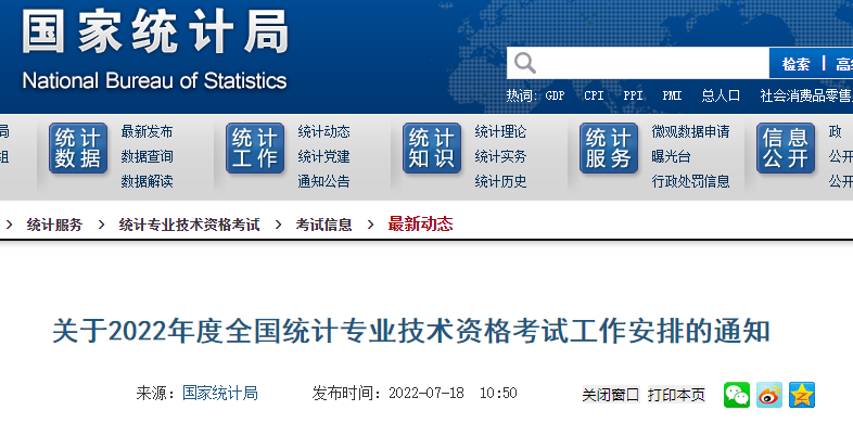 2022年度統(tǒng)計(jì)專業(yè)技術(shù)初級(jí)、中級(jí)和高級(jí)資格考試日期均定為10月30日(星期日)。