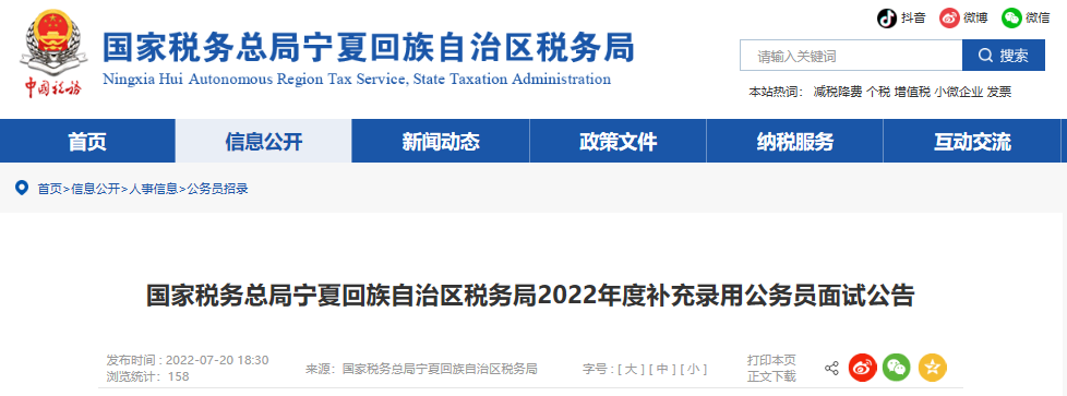 2022年國家公務(wù)員考試已進(jìn)入面試階段,為了讓考生及時(shí)獲悉相關(guān)面試事宜,今天為您精心整理了2022年國家稅務(wù)總局寧夏回族自治區(qū)稅務(wù)局補(bǔ)充錄用國家公務(wù)員面試公告,供各位考生的查閱,更多國家公務(wù)員考試方面的資訊,請(qǐng)關(guān)注的更新。