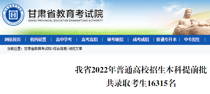 高考頻道從甘肅省教育考試院了解到,2022年甘肅高考本科提前批共錄取考生16315名。具體如下:
