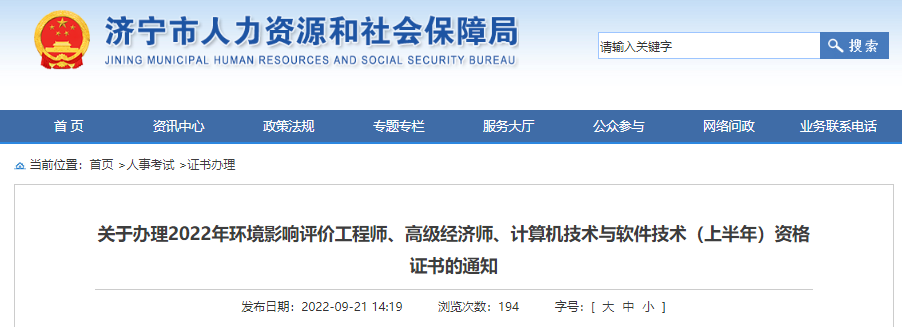 2022年度環(huán)境影響評價工程師、高級經(jīng)濟(jì)師、計算機(jī)技術(shù)與軟件(上半年)資格證書,已由山東省人力資源和社會保障廳下發(fā)至我市,為做好疫情防控,減少人員流動,方便快捷辦理證書,現(xiàn)將證書辦理有關(guān)事項(xiàng)通知如下: