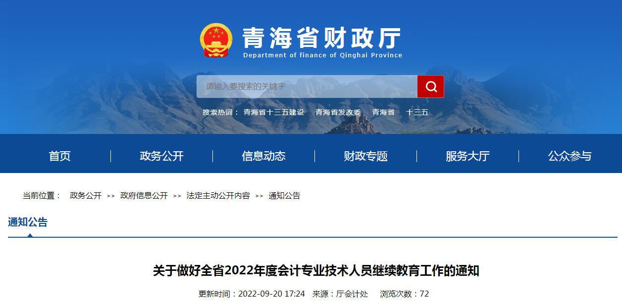 2022年青海會計人員繼續(xù)教育登錄入口:青海省會計信息服務(wù)平臺