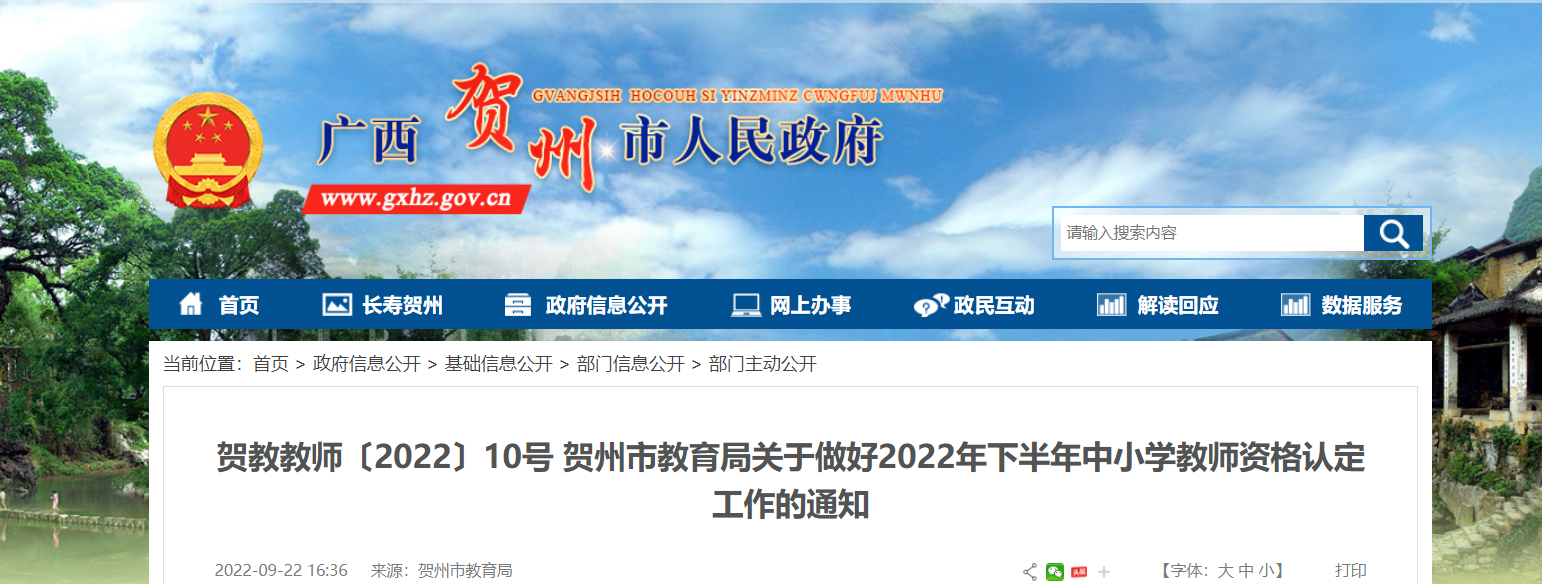 從廣西賀州市人民政府獲悉,2022年下半年廣西賀州中小學教師資格認定工作通知已公布,請相關(guān)人員仔細閱讀,具體詳情如下: