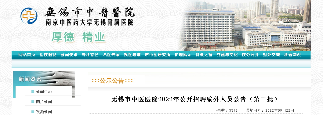 原文標(biāo)題:無錫市中醫(yī)醫(yī)院2022年公開招聘編外人員公告(第二批)