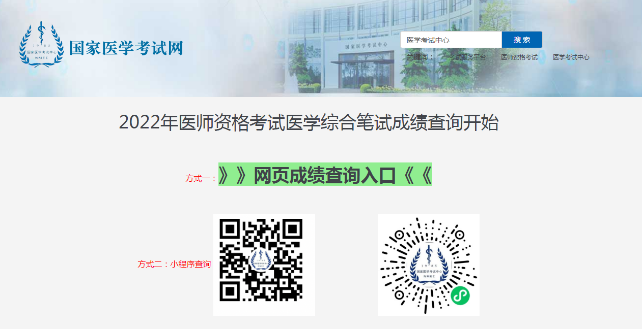 關(guān)注國家醫(yī)學考試中心公眾號(NMEC1985),點擊“考生服務(wù)”菜單,進入“成績查詢”,輸入“準考證號”、“證件編號”和“圖片識別碼”進行查詢。