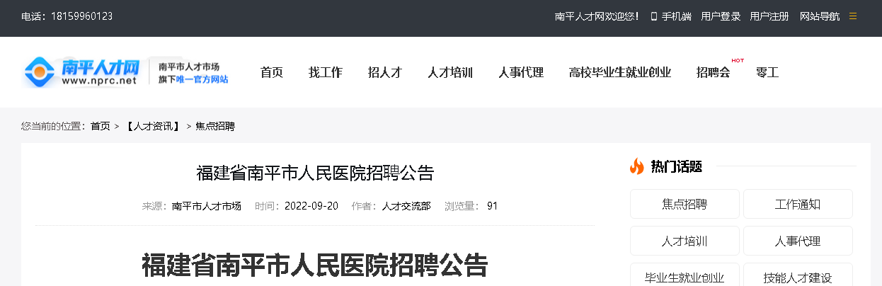 2022福建省南平市人民醫(yī)院招聘5人,報名時間:2022年9月30日截止,現(xiàn)將招聘公告原文發(fā)布如下: