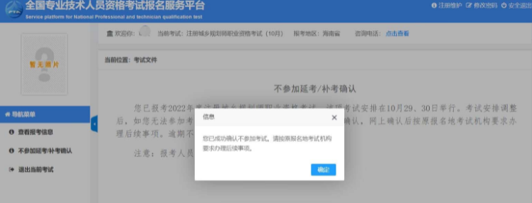 參加延期考試的人員無需進行網(wǎng)上確認,逾期不確認的,視同參加延期考試。