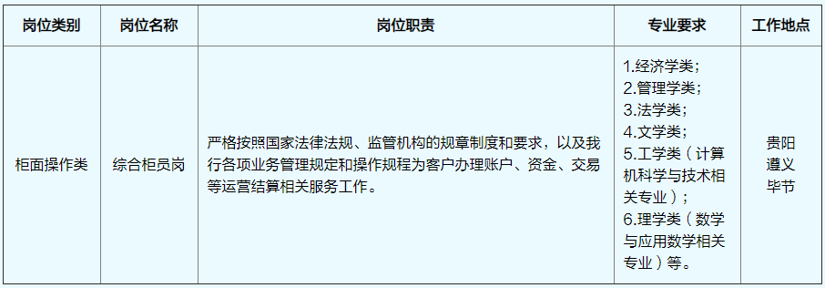 秋季校園招聘崗位為柜面操作類,崗位說明如下: