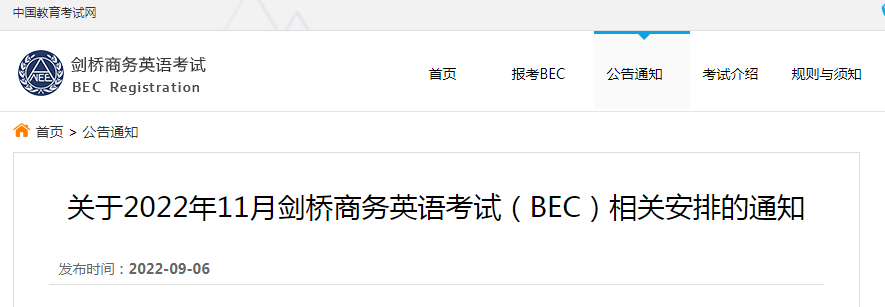 原文標(biāo)題:關(guān)于2022年11月劍橋商務(wù)英語考試(BEC)相關(guān)安排的通知