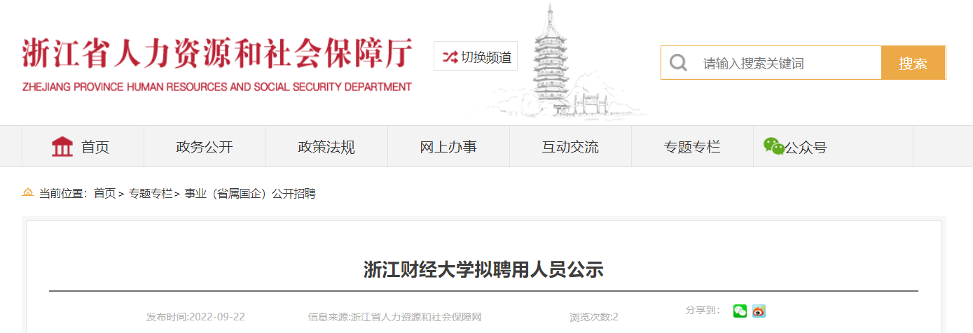 2022浙江財經(jīng)大學擬聘用人員公示已發(fā)布,公示時間:從2022年9月22日到2022年9月30日,現(xiàn)將招聘公告原文發(fā)布如下: