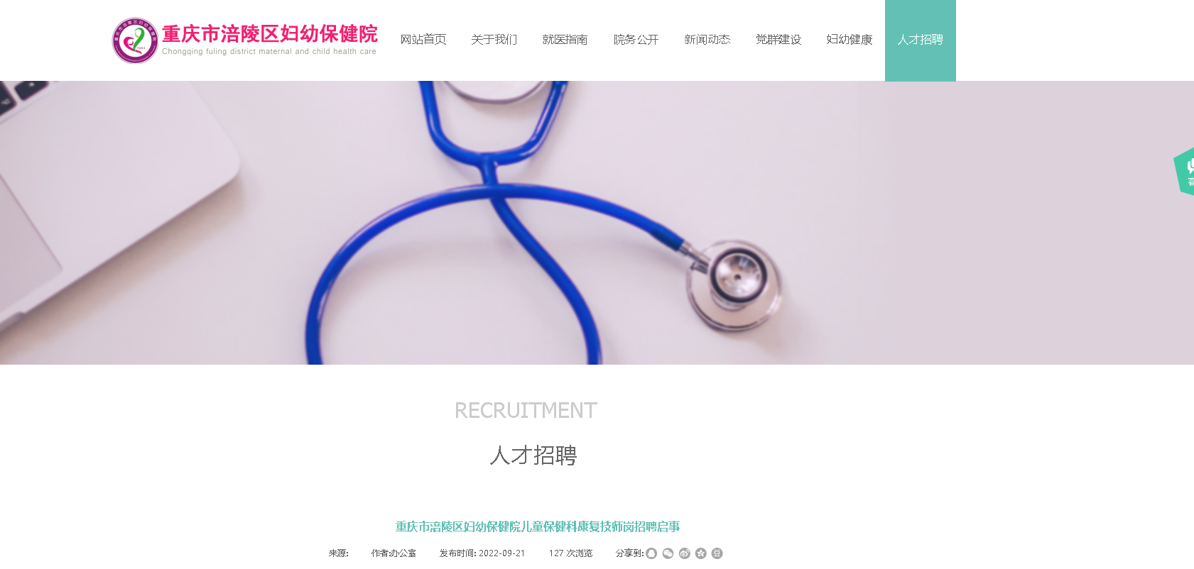 2022重慶涪陵區(qū)婦幼保健院招聘,報(bào)名時(shí)間:2022年9月21日—2022年9月26日,現(xiàn)將招聘啟事原文發(fā)布如下: