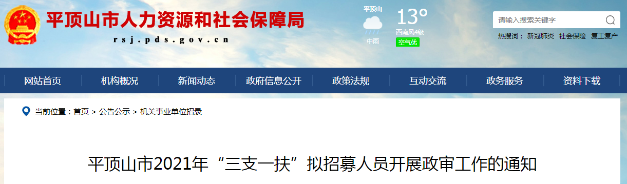 2021年河南平頂山市三支一扶擬招募人員政審工作通知已公布,為了方便廣大考生的查閱,下面為您詳細(xì)介紹一下本次擬招募人員政審工作的具體事宜,希望廣大考生及時(shí)關(guān)注,如有相關(guān)疑問,請(qǐng)關(guān)注三支一扶考試頻道為您實(shí)時(shí)做出的更新。
