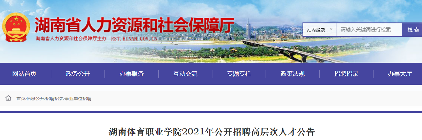 招聘信息通過湖南省人力資源和社會保障廳(http://rst.hunan.gov.cn/)、湖南省體育局(http://tyj.hunan.gov.cn/)、湖南體育職業(yè)學(xué)院(http://www.hntyxy.net/)網(wǎng)站面向社會公開發(fā)布。