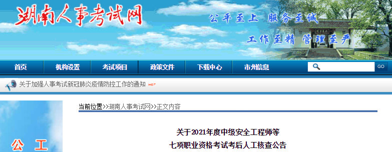 根據(jù)人力資源和社會(huì)保障部人事考試中心《關(guān)于印發(fā)〈專(zhuān)業(yè)技術(shù)人員職業(yè)資格考試報(bào)名證明事項(xiàng)告知承諾制工作規(guī)程〉的通知》(人考中心函〔2021〕1號(hào))、省人力資源社會(huì)保障廳《關(guān)于專(zhuān)業(yè)技術(shù)人員資格考試實(shí)行考后資格審查的通知》(湘人社函〔2012〕526號(hào))、《關(guān)于做好湖南省2021年度統(tǒng)計(jì)專(zhuān)業(yè)技術(shù)資格考試考務(wù)工作的通知》(湘人社考函〔2021〕17號(hào))、《關(guān)于做好湖南省2021年度執(zhí)業(yè)藥師職業(yè)資格考試考務(wù)工作的通知》(湘人社考函〔2021〕19號(hào))、《關(guān)于做好湖南省2021年度出版專(zhuān)業(yè)技術(shù)人員職業(yè)資格考試考務(wù)工作的通知》(湘人社考函〔2021〕20號(hào))、《關(guān)于做好湖南省2021年度中級(jí)安全工程師職業(yè)資格考試考務(wù)工作的通知》(湘人社考函〔2021〕21號(hào))、《關(guān)于做好湖南省2021年度勘察設(shè)計(jì)工程師執(zhí)業(yè)資格考試考務(wù)工作的通知》(湘人社考函〔2021〕22號(hào))、《關(guān)于做好湖南省2021年度一級(jí)造價(jià)工程師職業(yè)資格考試考務(wù)工作的通知》(湘人社考函〔2021〕23號(hào))及《關(guān)于做好湖南省2021年度注冊(cè)城鄉(xiāng)規(guī)劃師職業(yè)資格考試考務(wù)工作的通知》(湘人社考函〔2021〕24號(hào))等文件精神,現(xiàn)將做好2021年度中級(jí)安全工程師等職業(yè)資格考試考后人工核查工作有關(guān)事項(xiàng)公告如下: