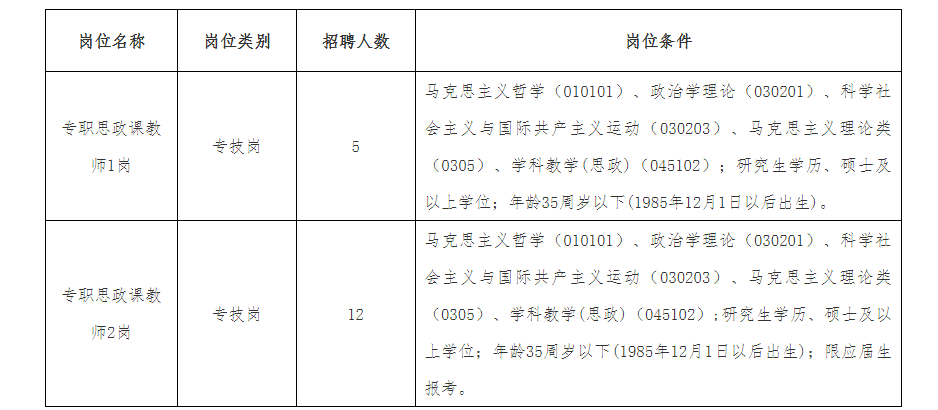 2.以上崗位條件中的學(xué)科專業(yè)按照教育部印發(fā)的《研究生學(xué)科專業(yè)目錄》、《專業(yè)學(xué)位授予和人才培養(yǎng)目錄》設(shè)置,專業(yè)名稱后括號中的數(shù)字為學(xué)科專業(yè)代碼;