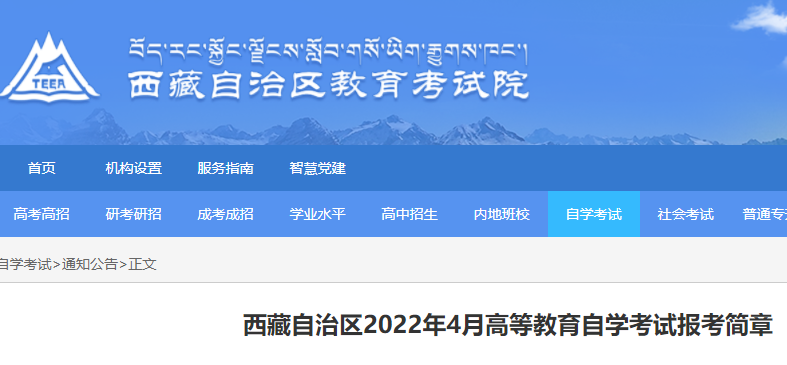 自學(xué)考試頻道從西藏教育考試院了解到,西藏自治區(qū)2022年4月高等教育自學(xué)考試報(bào)考簡章已公布,具體如下:
