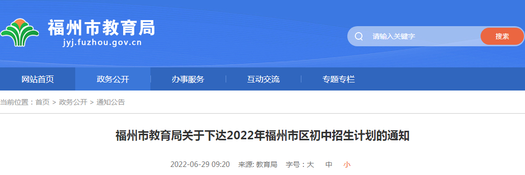 小升初頻道從福州市教育局了解到,2022年福建福州市區(qū)初中招生計(jì)劃的通知已發(fā)布,詳情如下: