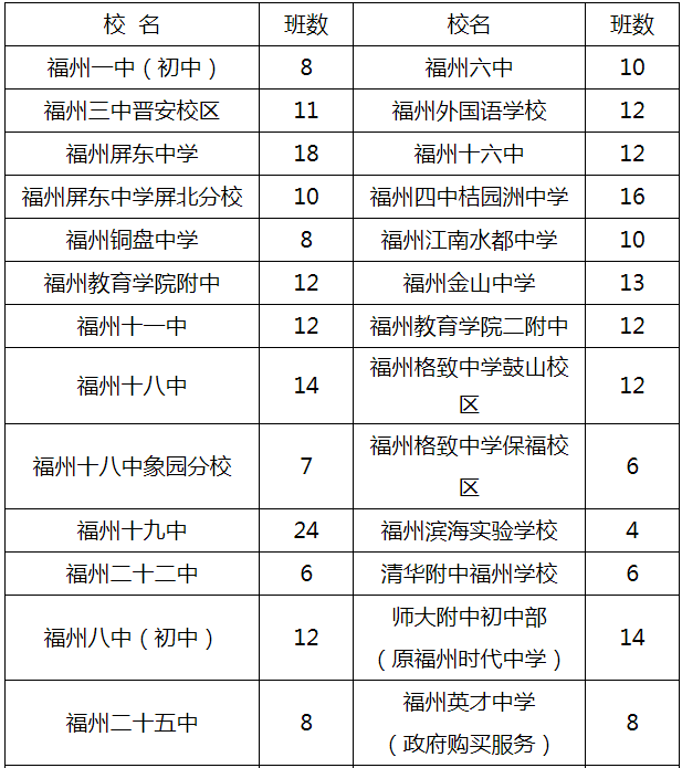 今年福州市區(qū)初中招生計(jì)劃繼續(xù)執(zhí)行公辦初中按照對(duì)口小學(xué)畢業(yè)生總數(shù)下達(dá)初中招生計(jì)劃,民辦初中則以民辦學(xué)校的辦學(xué)條件和規(guī)模下達(dá)招生計(jì)劃,現(xiàn)將福州市區(qū)有關(guān)學(xué)校初中招生計(jì)劃公布如下: