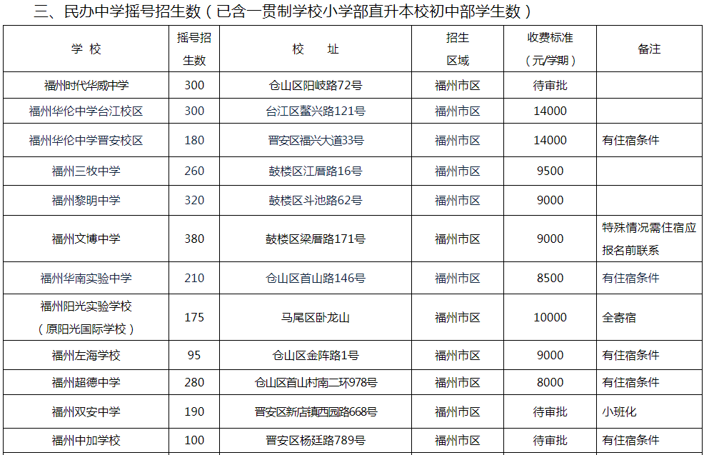 2.初中招生區(qū)域中“福州市區(qū)”指福州六區(qū)及高新區(qū)。