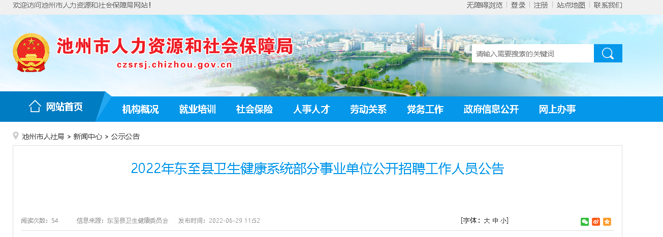 2022年?yáng)|至縣衛(wèi)生健康系統(tǒng)部分事業(yè)單位公開(kāi)招聘工作人員計(jì)劃7名。招聘崗位、計(jì)劃等信息于2022年6月29日起在東至縣人民政府網(wǎng)(http://www.dongzhi.gov.cn/)、池州市人力資源和社會(huì)保障局網(wǎng)站(http://czsrsj.chizhou.gov.cn/home.html)、池州市人事考試培訓(xùn)網(wǎng)(http://rskszx.czsrsj.chizhou.gov.cn)統(tǒng)一發(fā)布。