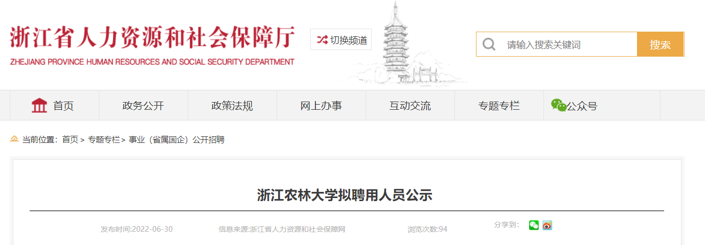 2022浙江農(nóng)林大學(xué)擬聘用人員公示