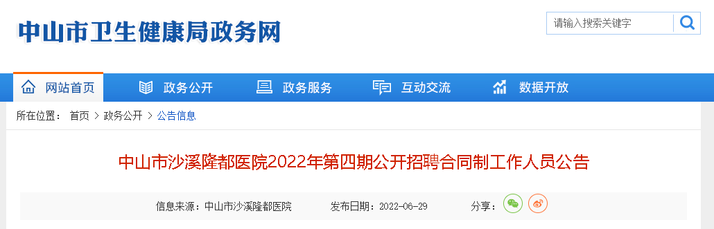因工作需要,現(xiàn)面向社會(huì)公開招聘中山市沙溪隆都醫(yī)院合同制工作人員12名,現(xiàn)將有關(guān)事項(xiàng)公告如下: